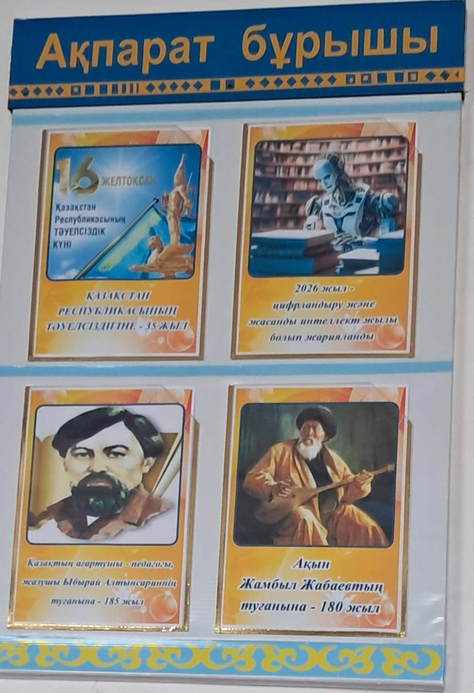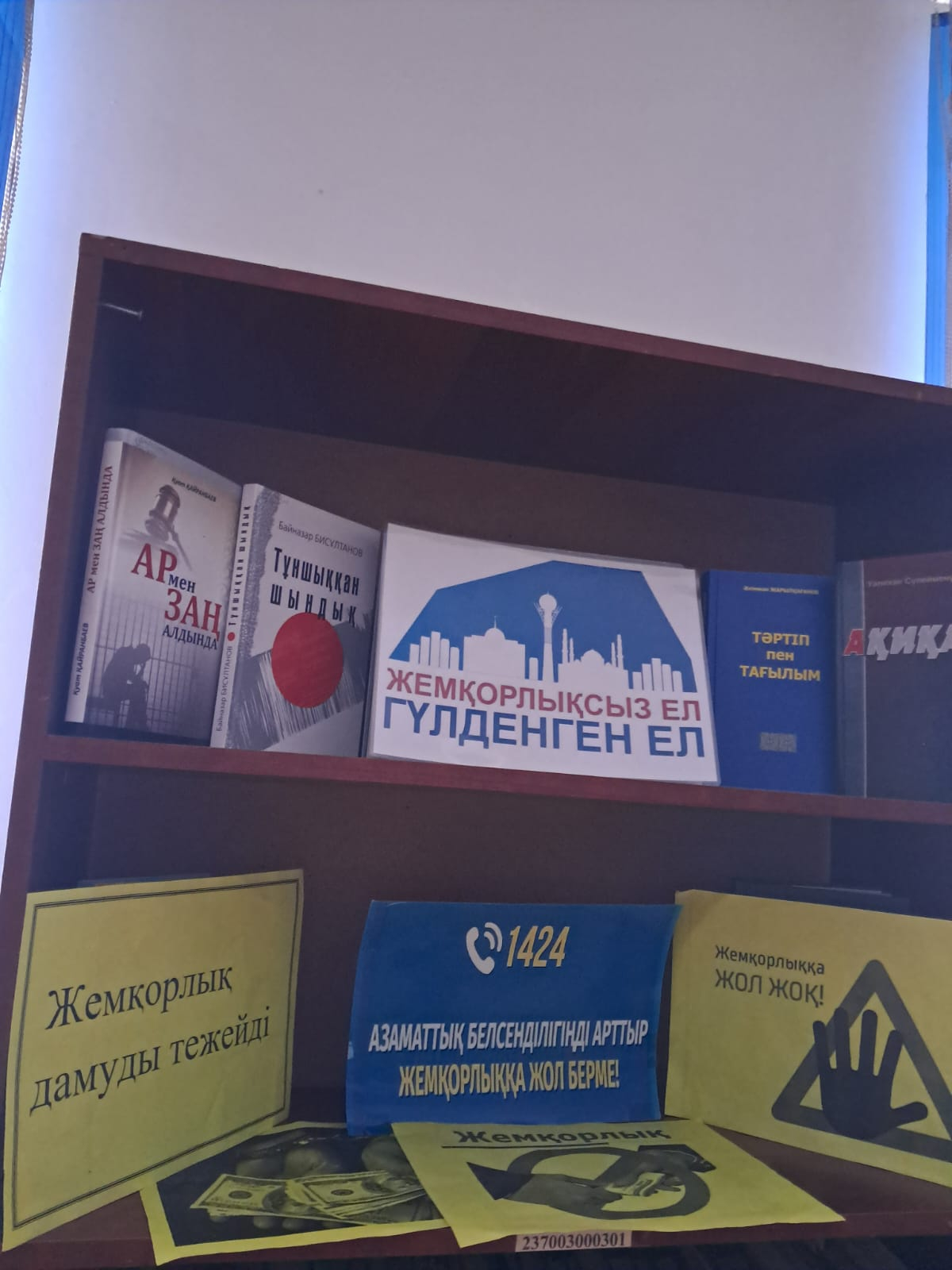 Кітапхана. Ақпараттық бұрыш. Кітап көрмесі.